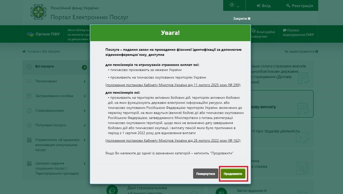 Крок 2. Ознайомтесь з інформацією про категорії отримувачів, для яких реалізували сервіс та у разі належності до однієї з них натисніть «Продовжити».