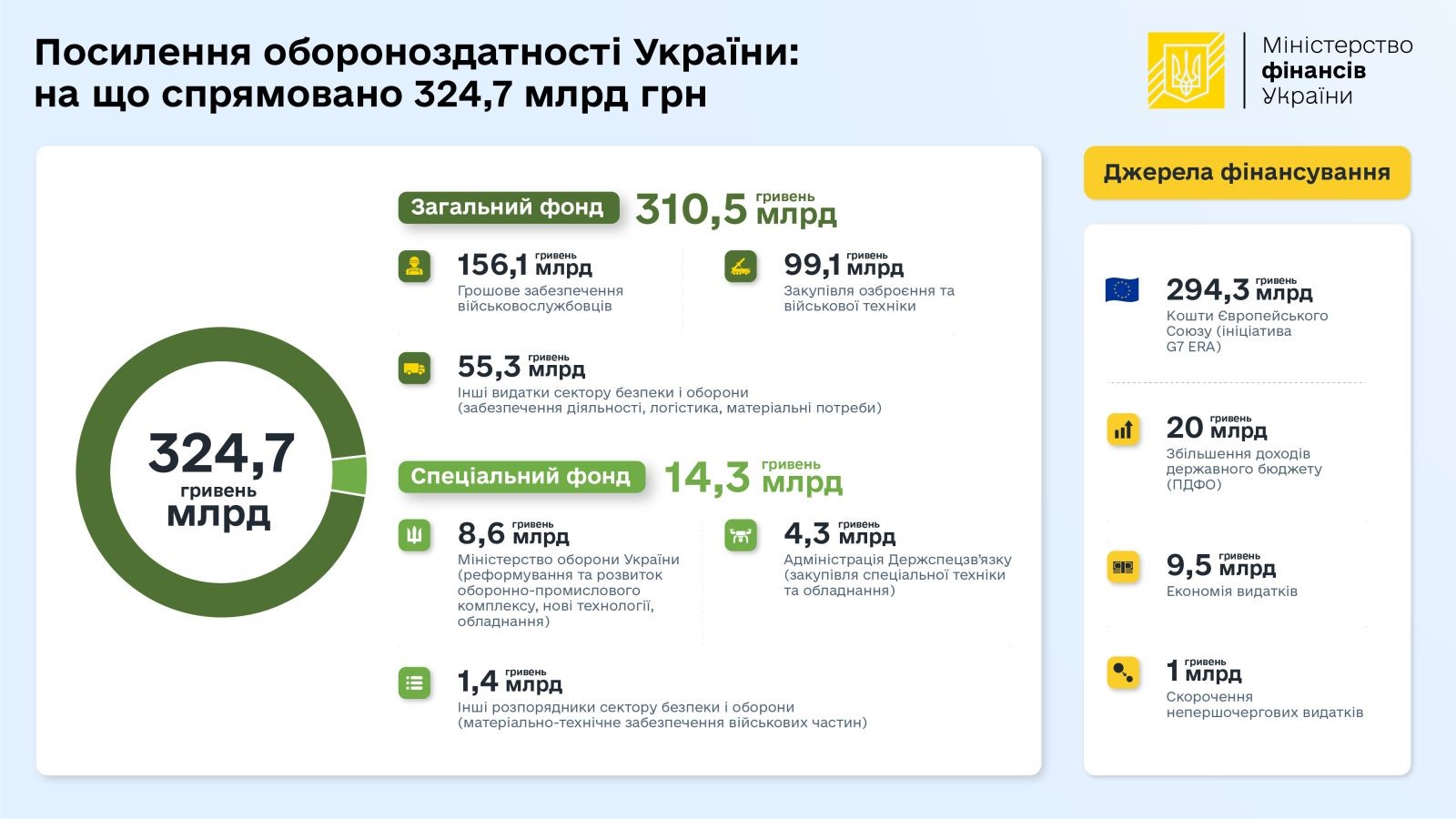 Загальний обсяг додаткових видатків — 324,7 млрд грн, зокрема:
